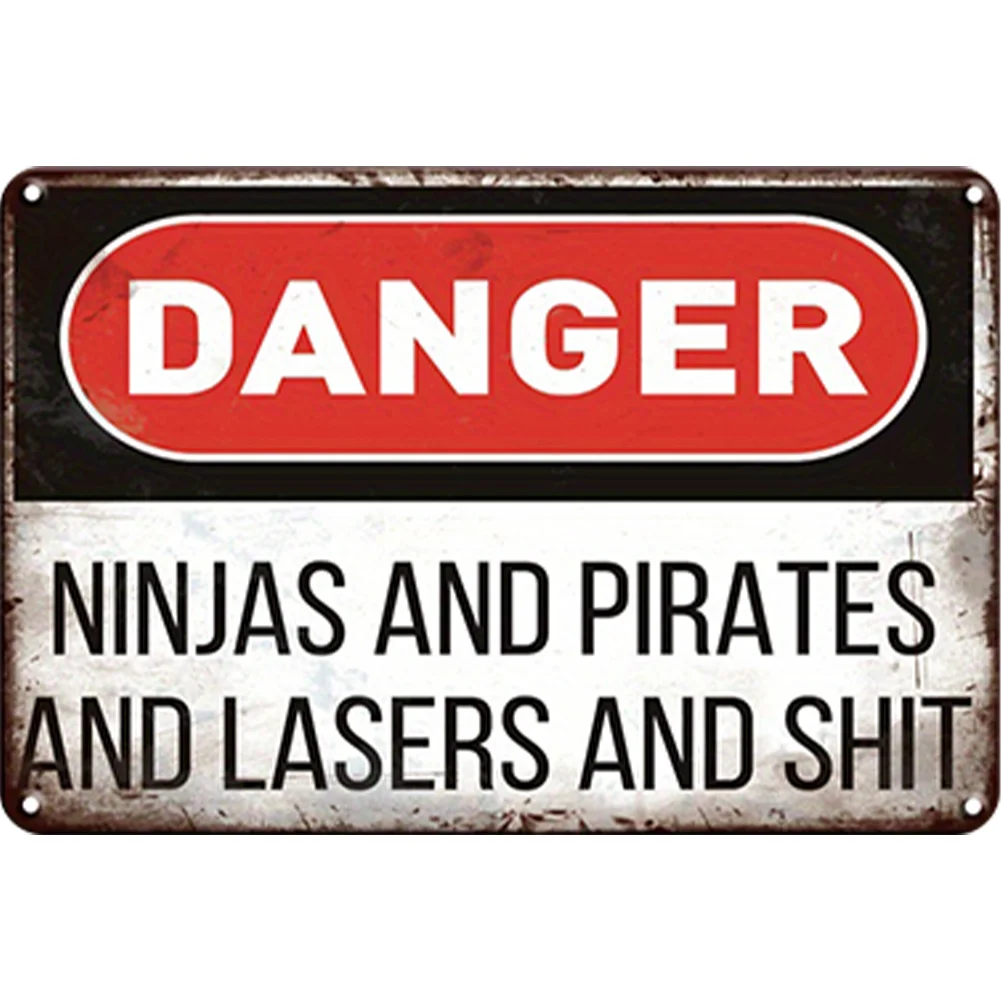 Danger Ninjas And Pirates And Laser And - Vintage Metal Signs - 20*30cm/30*40cm - Warning