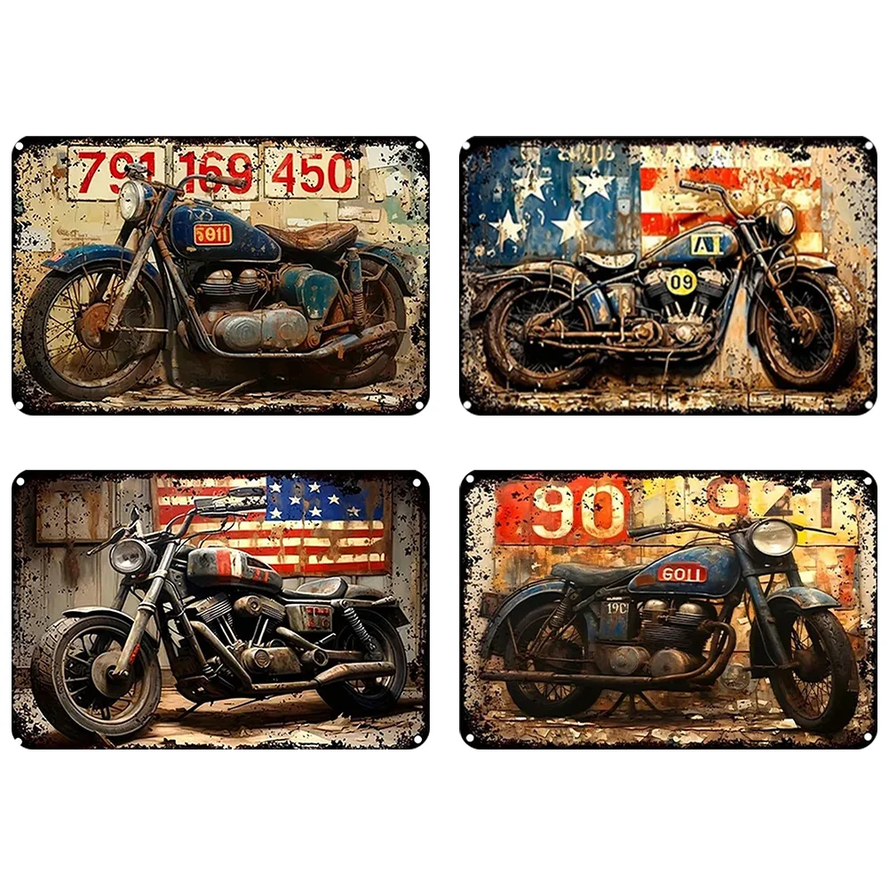[US Local Warehouse]4PCS Motorcycle - Vintage Metal Signs Set - 30*40cm